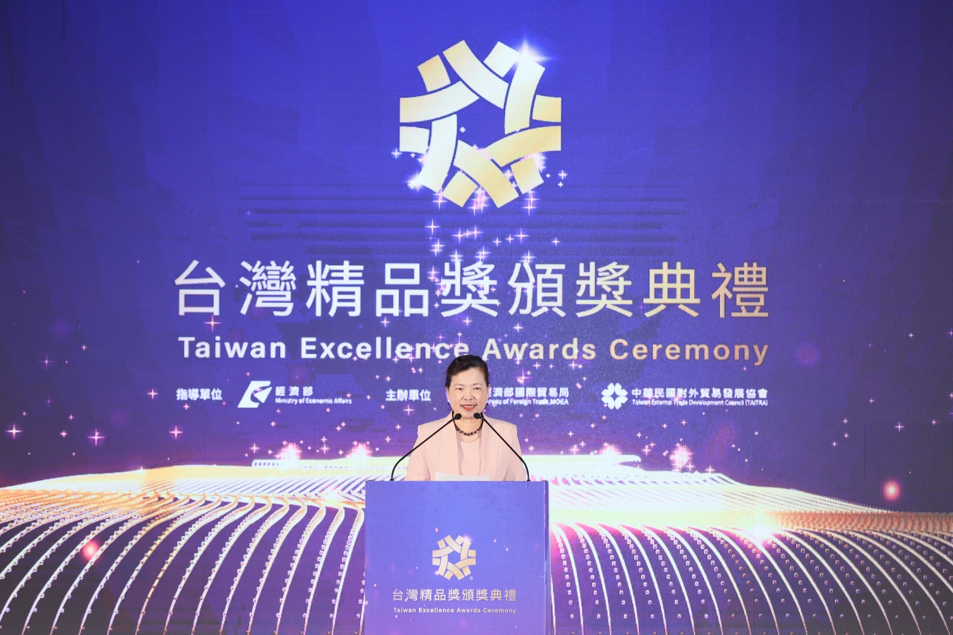 經濟部部長王美花揭曉並頒發台灣精品金、銀質獎得主獎項。現場產經學界重要貴賓、駐臺使節及台灣精品企業代表近500人到場,共同為「台灣精品獎」得獎企業喝采。